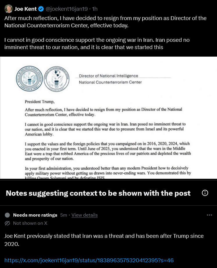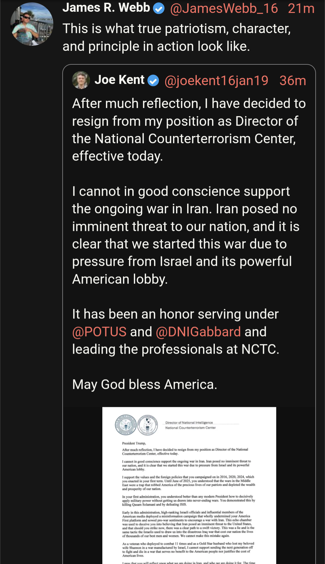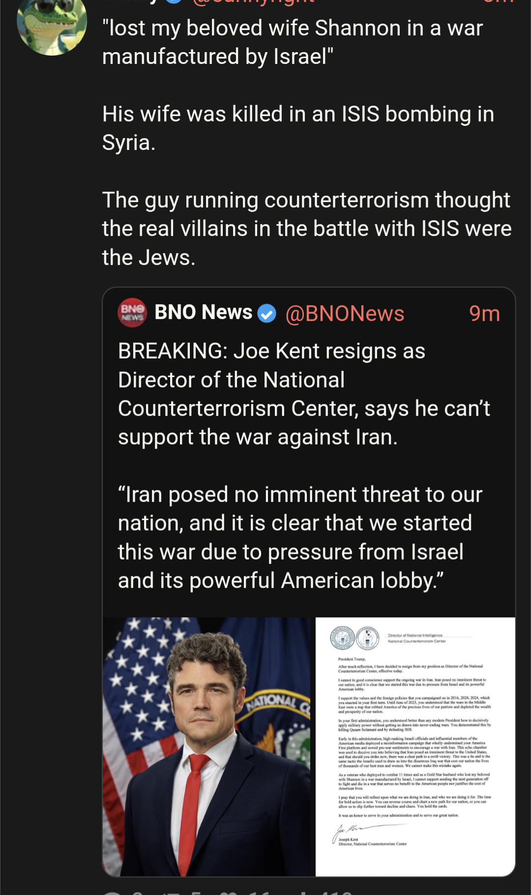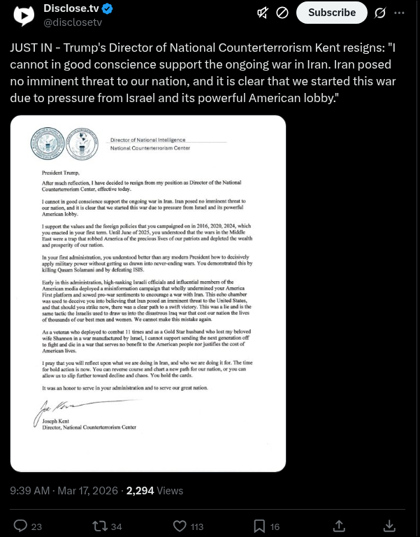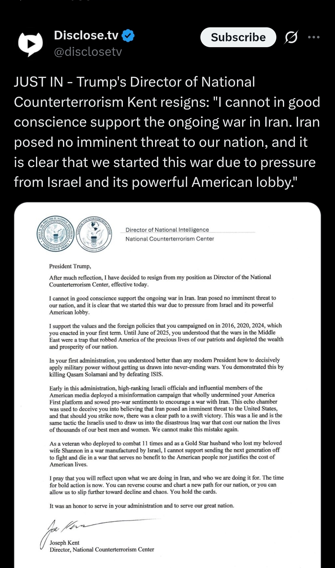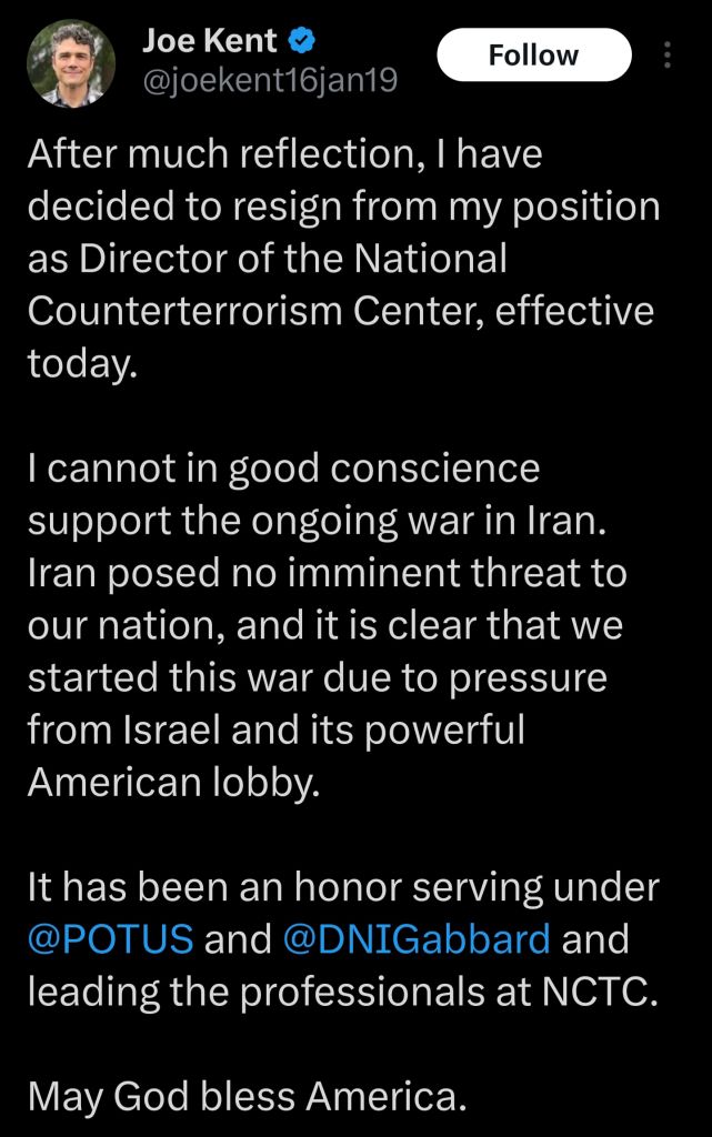 Irish Joe Kent just RESIGNED He was head of counter IntelThe Irish are against USA success
