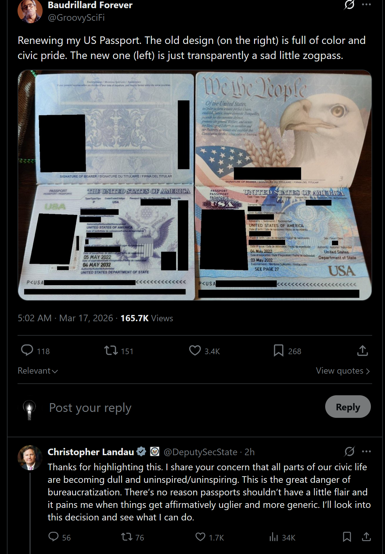 Rubio's 2nd shares random twitter user's concern about the new passport being a sad zogpass