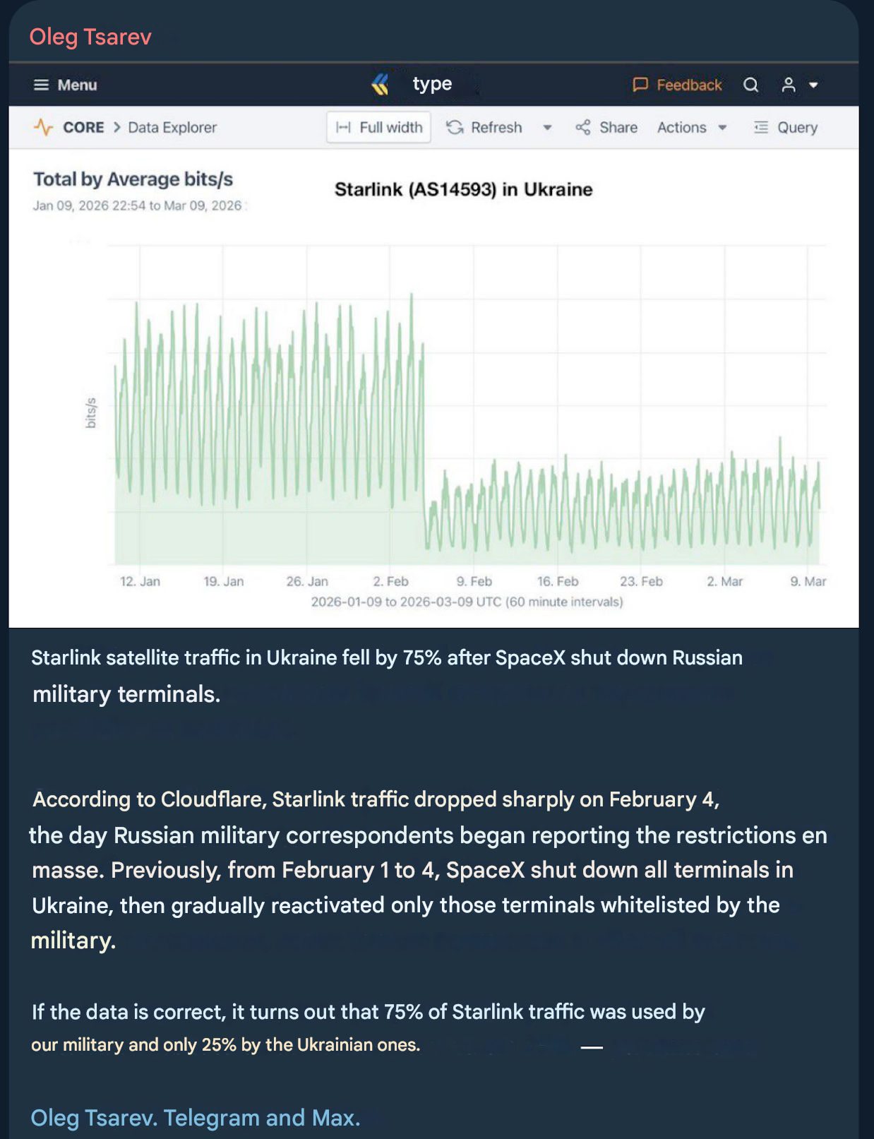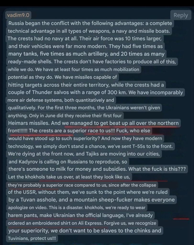 Previous: >>530939993Day 1,483 – Daily assessment: understandingwar.org/analysis/russia-ukraine/#research▶Latest>Russia Shuts Off Internet in Moscow as It Tests Nationwide Censorship System>Zelenskyy: Ukraine has thwarted Russian offensive operation planned for March>The EU has no intention of abandoning its plans to phase out all Russian energy imports — European Commissioner>Over the course of two and a half years, Moscow has received more than eight million artillery shells from Pyongyang, supplies declining>Slovak electricity grid operator SEPS has stopped emergency assistance to Ukraine>Ukraine strikes oil hub in russia's Krasnodar Krai>Ukrainian forces hit russian S-400 launcher, radar systems in Crimea>for the 3rd month in a row, russians lost more soldiers than it has recruited - Syrsky>Ukrainian Special Operations Forces struck Iskander launchers in Crimea>Ukraine claims 'successful' strike on 2 russian ships ferrying weapons, equipment through Kerch Strait>Afipskyi refinery droned>Confidential russian documents obtained by HUR Show 1.3M russian war losses - 62% dead>Ukraine opens battlefield data access to allies' AI models to train drone AI software t. UA MoD>Romania signs deal with Ukraine on joint defence production including drones>Ukraine has sent anti-drone specialists to 4 Middle Eastern nations, received requests of help from 7 others>Japan eyeing introduction of Ukraine-made drones for defense>US lifts sanctions on russian oil that is already on tankers at sea until April 11, 2026▶Telegramrentry.org/telosint2023t.me/ukr_pics▶Intelt.me/DeepStateENodin.tradoc.army.mil/WEG (equipment explorer)ukr.warspotting.net (visually confirmed losses)▶Mapsdeepstatemap.live/enliveuamap.com/en▶DISPOSABLE SOLDIER (diary of a RU mobik)TOURS 1-4: files.catbox.moe/mpcw7p.zip▶12 min of TZD in one ditch (Pokrovsk area) - 28 killedfiles.catbox.moe/sxbxfb.mp4