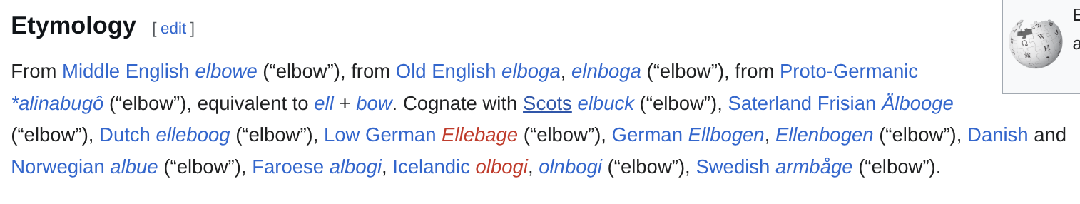 >>530970670the more common variant is Ellbogen, very close to the old English elboga