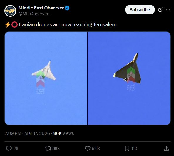 >Iranian drones are now reaching Jerusalem