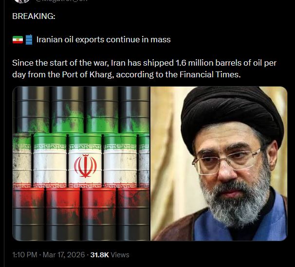 >BREAKING:>Iranian Supreme Leader Mojtaba Khamenei REJECTED a ceasefire proposal from US and Israel - Reuters>Iranian Supreme Leader Mojtaba Khamenei rejected proposals sent to Iran’s foreign ministry by intermediaries, telling a foreign policy meeting, “It is not the time for peace,”.https://www.reuters.com/world/middle-east/irans-new-supreme-leader-rejects-proposals-reducing-tensions-with-us-senior-2026-03-17/