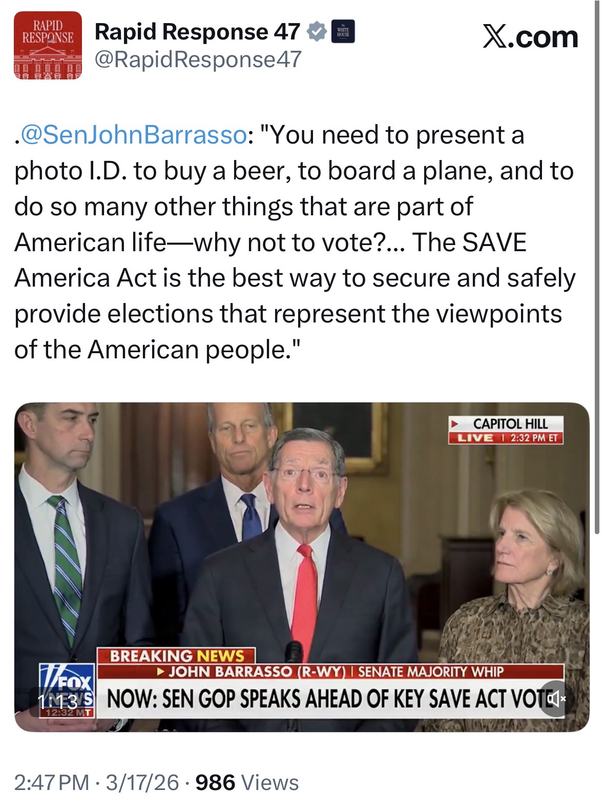 The American people spoke pretty clearlyWe are in favor of the Save America act, except remove the pointless and utterly baffling demand for full legalization of trans surgeries for kids (with parental consent)We made this clear to President trump but he has not responded or removed his demand for trans surgeries from the actSo we don’t support it