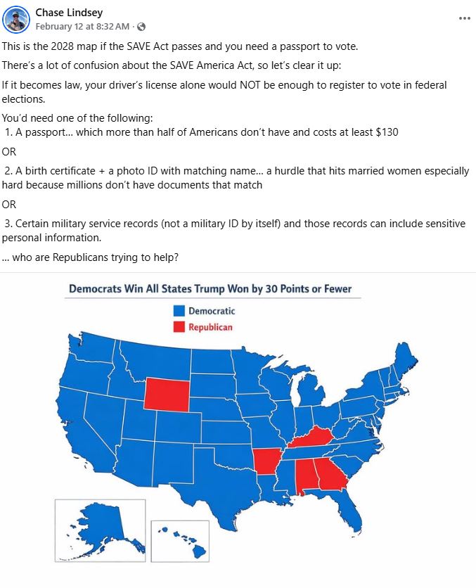 >>530973746>How fucked are democrats if this gets passed?Apparently the only acceptable ID to vote under this Act is a passport. Drivers licenses aren't considered valid ID. Since only 50% of Americans have a passport, that decision was done deliberately to disenfranchise voters