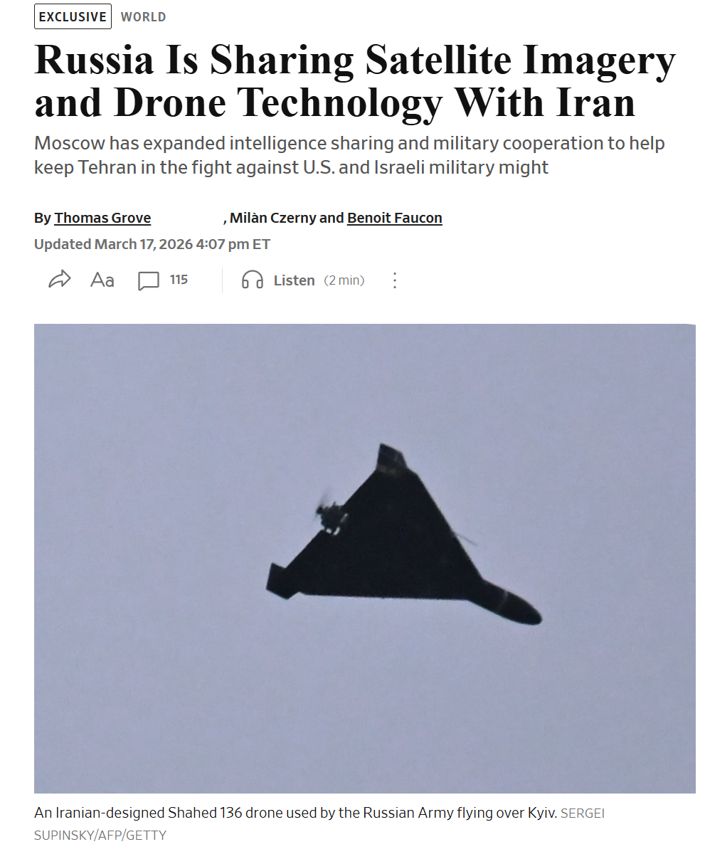 RUSSIA IS EXPANDING IT'S SUPPORT FOR IRAN AND IS DIRECTLY RESPONSIBLE FOR HELPING THEM TAKE OUT MULTIPLE THAAD LAUNCHERS IN THE REGION - WSJ
