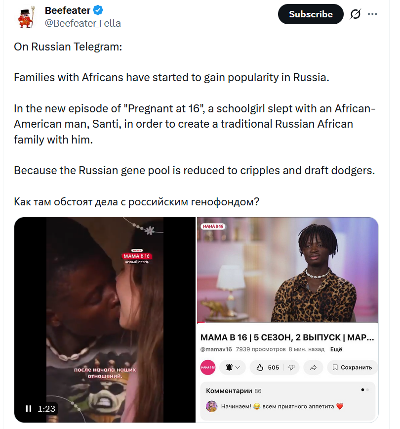 >More information about the ПИДOP interracial child pornography on Russian TV>Firstly, it came to light that the Negro migrant who impregnated the 16 year old Russian girl and who was filmed with the Russian girl on TV in a pornographic manner was 25 years old. The 25 year old African also doesn’t want to raise the child.>Secondly, we found out that the owner of the TV channel тeлeкaнaл ю which aired this show is the Jew Yuri Kovalchuk, who is a close family friend of Putin. In the first picture you can also see Putin publicly with Yuri's brother Mikhail. Yuri Kovalchuk, via his over a dozen TV channels and via other means, was one of the most important lobbyists for the invasion of Ukraine. Yuri Kovalchuk first entered public life out of nowhere in 2000, a year after Putin came to power, mysteriously acquiring a large share in Baltika Breweries and then in 2004 becoming a chair of Rossiya Bank. Essentially, this is a prime example of who Putin "replaced Yeltsin's oligarchs with" (a misconception coming from the purging of a handful of Yeltsin era oligarchs while the vast majority were kept). Similarly, Mikhail Kovalchuk also appears in public life first in 2000, becoming a corresponding member of the russian academy of sciences and quickly being promoted and given various titles. After the RAS promoted him to vice president of the Academy for nanotechnolog, they came into conflict with Putin personally in 2008 who insisted that Mikhail Kovalchuk be given an even higher position. Since it was before Moscow 2010 and Putins total consolidation of power in Russia, Putin was actually forced to back down.>In any case it is clear that the Kovalchuk's are personally supported and in fact hand picked by Putin. This is exactly what Putin wants for Russia.Kek