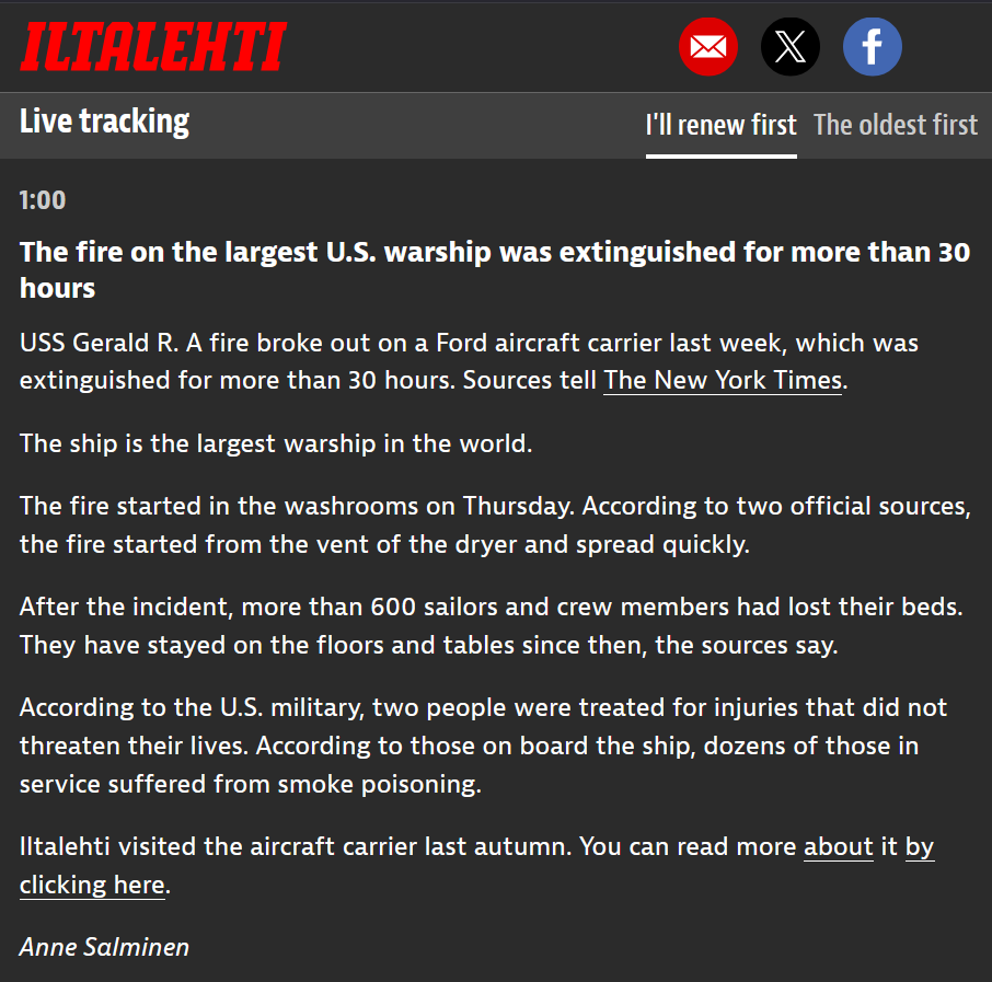 >>530991754>How the fuck can washrooms have enough burnable shitwasnt a washroom. what you get is just standard information quarantine publication.>there was a 30h fire on the largest warship. niggas got smartphones and wifi and shiiieeet. they cant just put that under the rug. report some official bullshit nonsense. goy cattle wont notice.