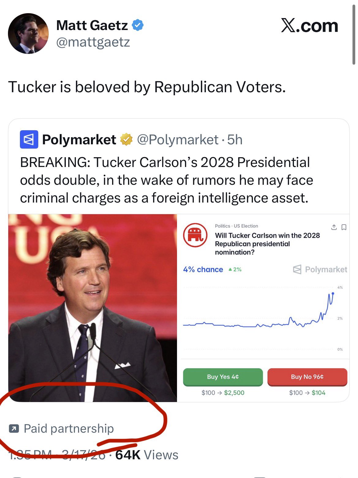>>530991494Does that mean he's getting money from Polymarket?