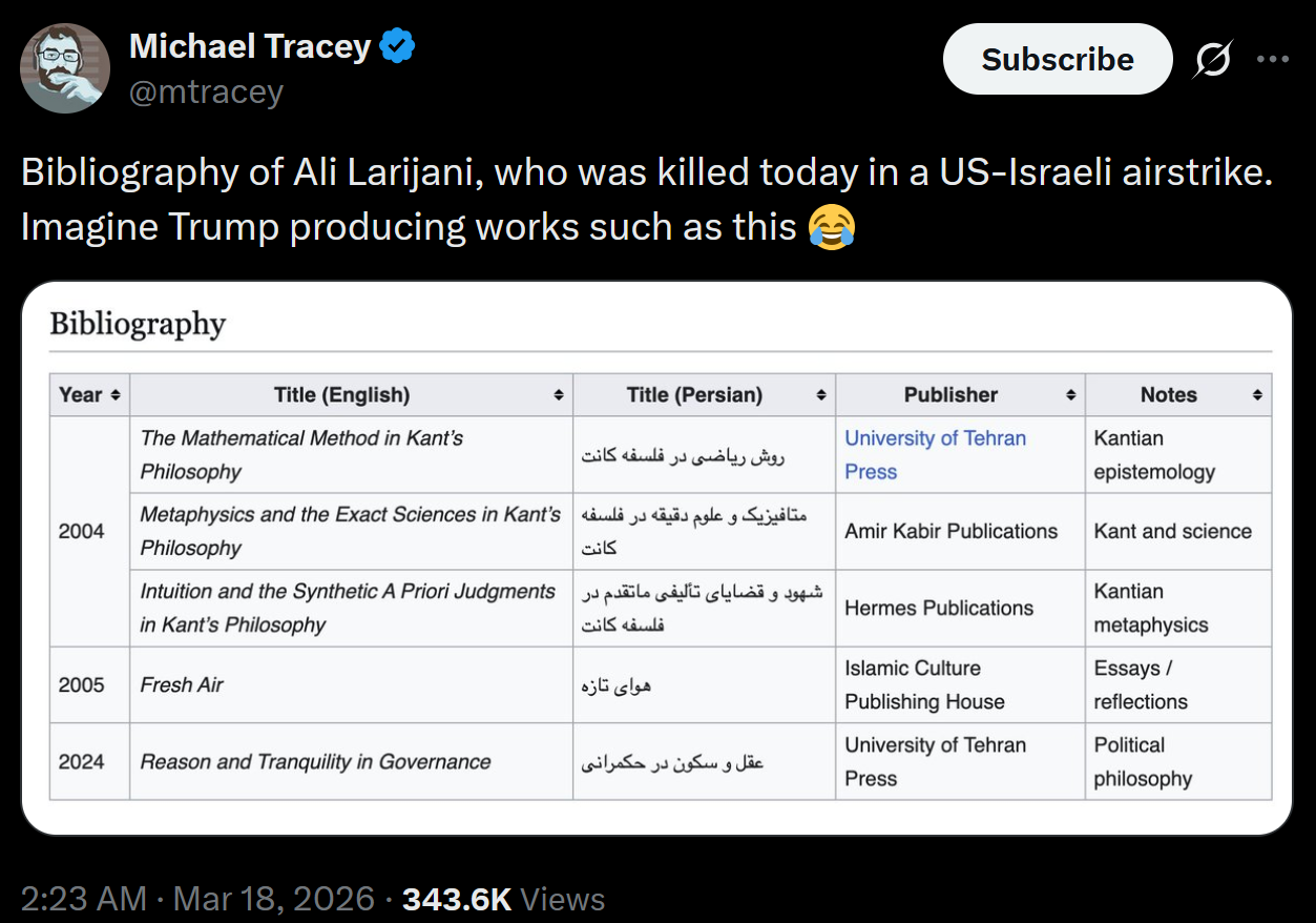 Israel killed Ali Larijani for to convince the USA regime change is possible this keeps the USA in the war long enough to distract everyone from their occupation of Lebanon. If the US pull out too early Iran will keeping sending missiles two norther Israel and they can throw their full backing at Hezbollah to push Israel out negating any gains.