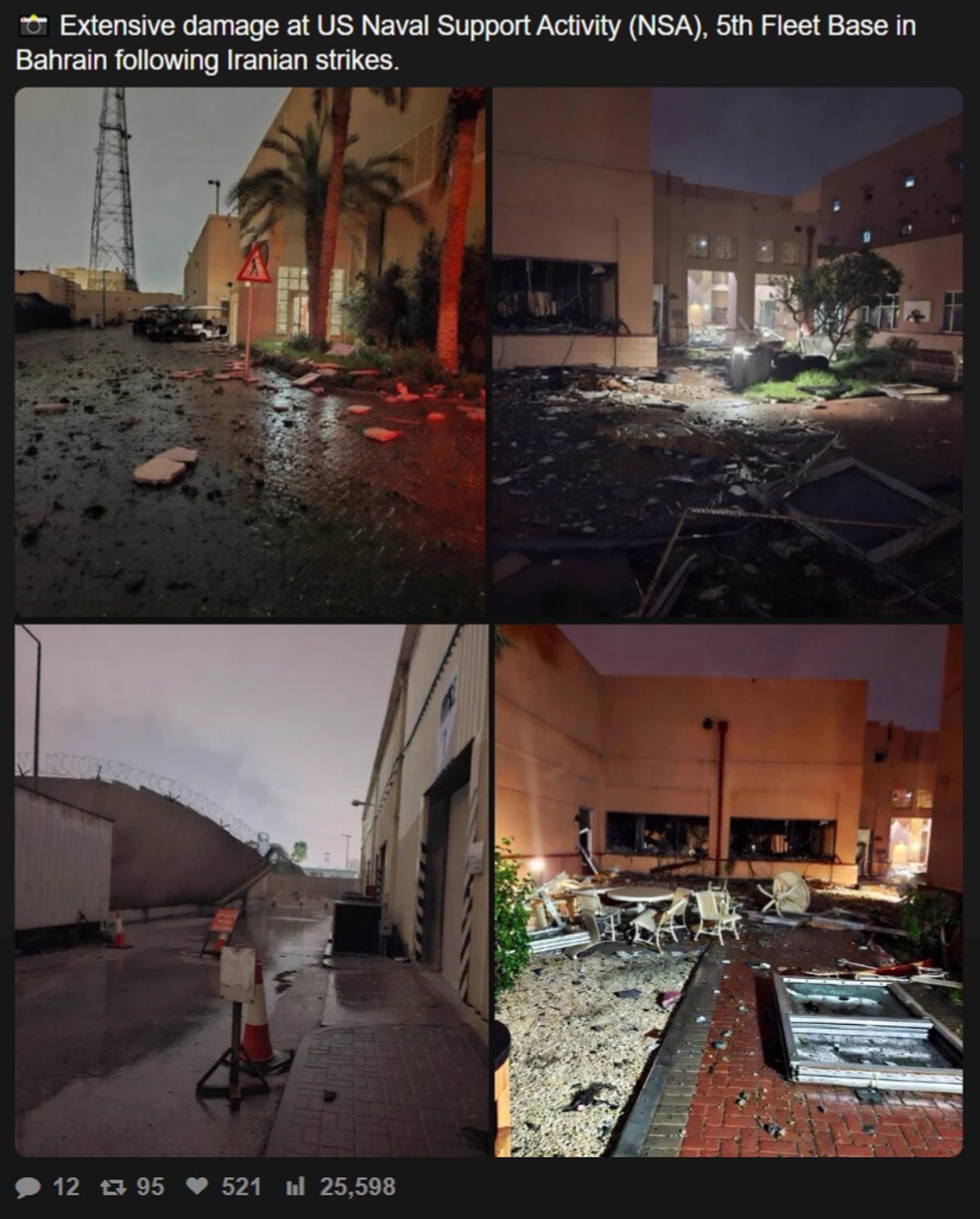Extensive damage at US Naval Support Activity (NSA), 5th Fleet Base in Bahrain following Iranian strikes