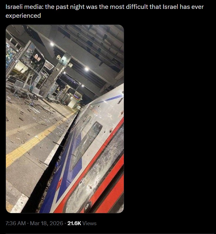 Prev >>531015660Timeline:▶ Day: 18>▶ Day: 17>Iran officially confirms Larijani's death along with his deputy, son, and several body guards>IDF issues evacuation order to Tyre>Israel orders the IDF to conduct assassinations of senior Iranian and Hezbollah figures upon actionable intelligence, without the need for further authorization.>The national counterterrorism director, Joe Kent, resigns, citing his opposition to the war>Ali Larijani and commander of Basij are dead, says Israel>Mojtaba Khamenei is gay (source: NY post & khazarian tranny)>US allies rebuff Trump's request for support in Strait of Hormuz>IDF 91st division has begun focused ground activity in southern Lebanon>The nuclear facility Parchin south of Tehran was attacked using bunker-buster bombs>Financial Times reports that the U.S. has told its European allies that deliveries of the U.S. arms they are buying for Ukraine may be delayed.>President Trump warned NATO that it faces a "very bad future" if it does not help the US open the Strait of Hormuz>Iran "open to countries who want to talk" about safe passage through the Strait of Hormuz>Japan tacitly refuses to send ships to the Strait of Hormuz>France rejects Trump's request to send warships to the Strait of Hormuz>Missiles and drones chase Americans out of Iraq>Iraqi militias release FPV drone footage operating above the U.S. Victoria military base near Baghdad International Airport.▶Livestreamshttps://www.youtube.com/watch?v=4E-iFtUM2kkhttps://www.youtube.com/watch?v=JHwwZRH2wz8▶Telegramhttps://rentry.org/tgnews▶Twitter accountshttps://nitter.net/clashreporthttps://nitter.net/FaytuksNetworkhttps://nitter.net/sentdefender▶Israel Rocket Alertshttps://www.tzevaadom.co.il/en/▶Air Traffichttps://www.flightradar24.com/https://flightaware.com/livehttps://globe.adsbexchange.com▶Maritime Traffichttps://www.marinetraffic.com/https://www.vesselfinder.com/