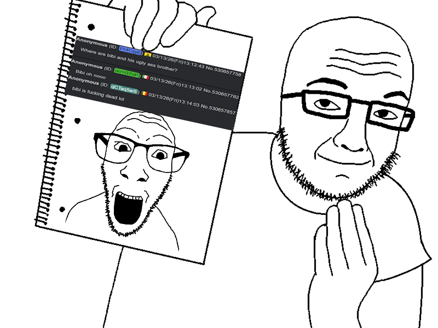 >>531023315The present discourse about Bibi's condition has shown that not to be the case. The collective IQ of the anti-zionist camp lately has utterly plummeted the cause. The Israeli argument for its actions can be framed in very clear & cogent ideas about security -- while the international opposition is sliding into a frenzy about Jewish supremacy, Epstein & Bush Sr. chopping up & eating babies, & fever dreams about Greater Israel. Anti-zionists used to have a coherent narratives about Israel, now it's become total slopaganda