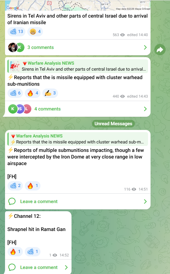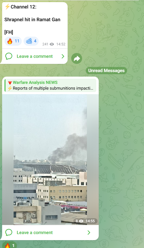 >Iran strikes Israel near Tel Aviv with cluster munitions, two killed