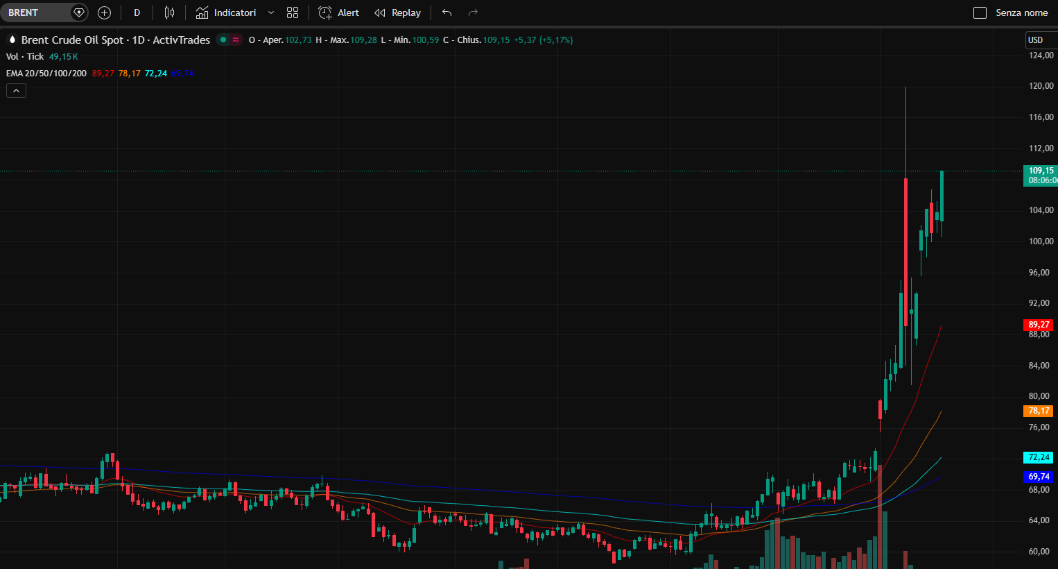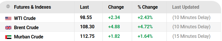 >Brent Oil Price: 103$ (Prev peak: 105$)