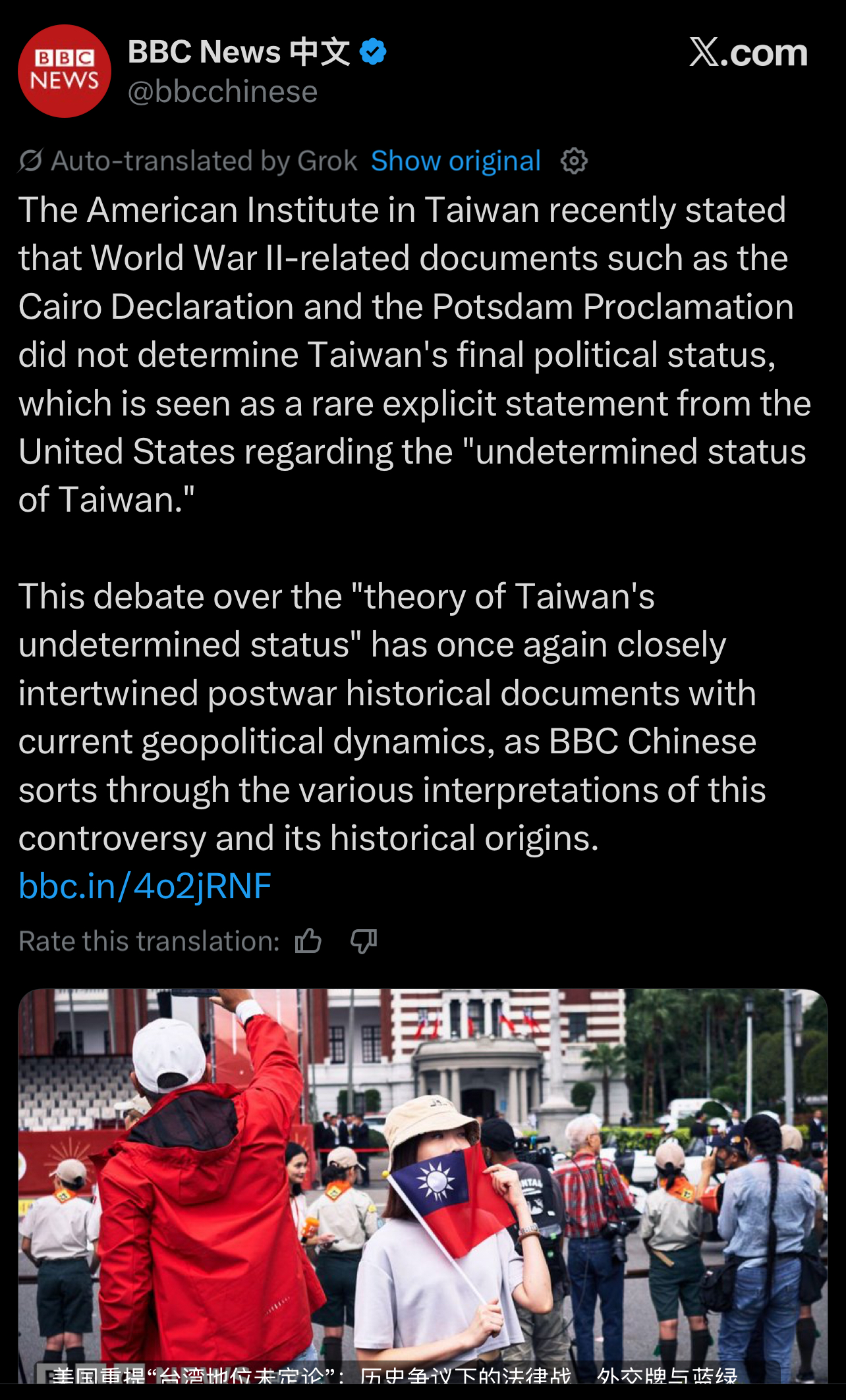 At this rate Taiwan will eventually come crawling to China for protection against warmongering pedomerica