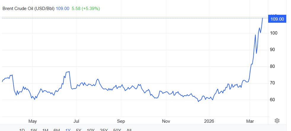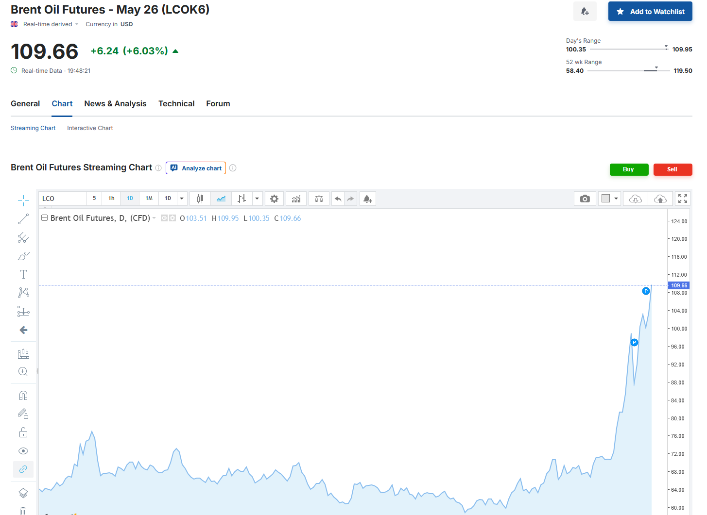 >>531054307>>Brent Oil Price: 108$ (Prev peak: 105$).back to 109 again