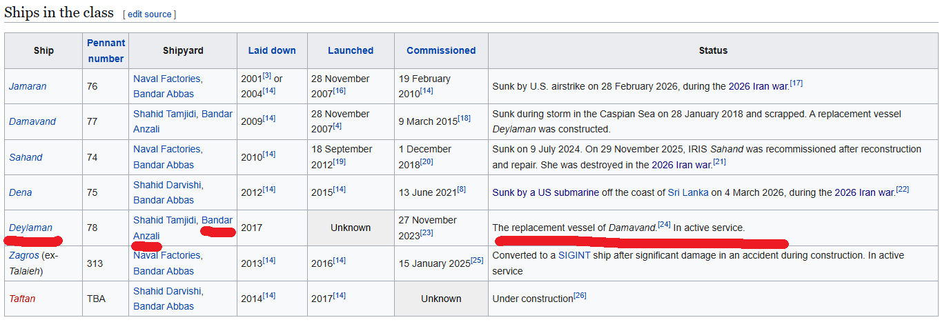 ALL of Iran's MOUDGE class ships are now at the bottom of the sea. There was only 1 surviving ship in the caspian sea, and it was sunk tonight.>no more navy award