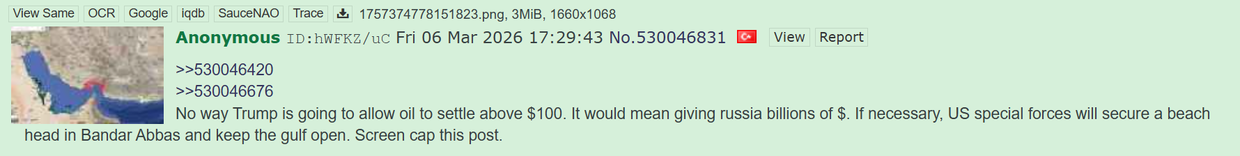 >>531056892>I NEVER WANTED THE STRAIT OF HORMUZ ANYWAY>IF YOU WANT IT SO BAD GO OPEN IT YOURSELF>IM GOING HOME