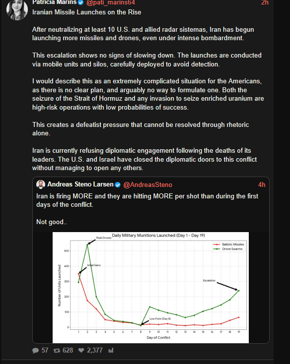 Iran is firing MORE and they are hitting MORE per shot than during the first days of the conflict.