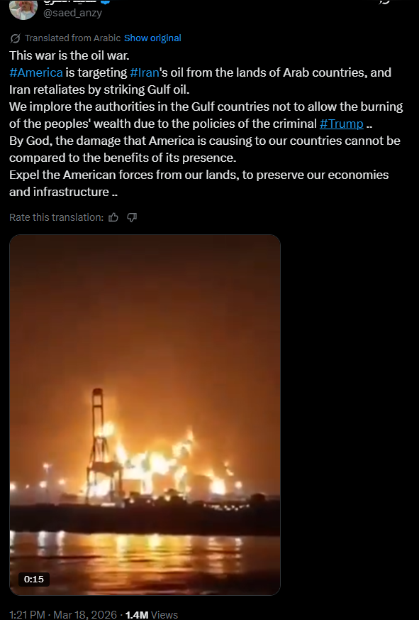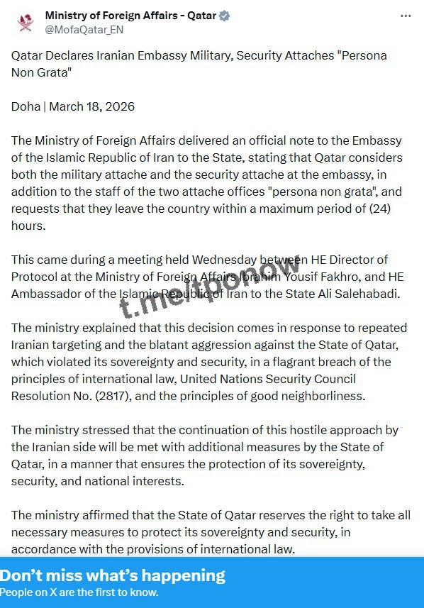 >Iran attacked Qatari gas and Saudi oil, Qatar denounced Iran.