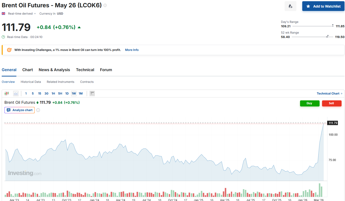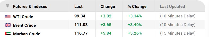 >Brent Oil Price: 109$ (Prev peak: 105$).
