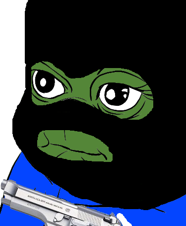 >>531069833>What appears to be pepe the frog wearing a ski mask and holding a gun