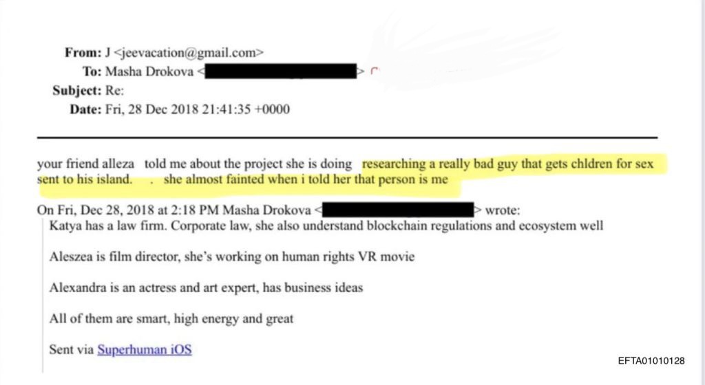 >In one instance, investigators say a 15-year-old who was forced into sexual acts with Epstein attempted to escape by swimming off one of Epstein's private islands, Little St. James. Eventually, Epstein's crew found her after assembling a search team and took her passport, prosecutors say.