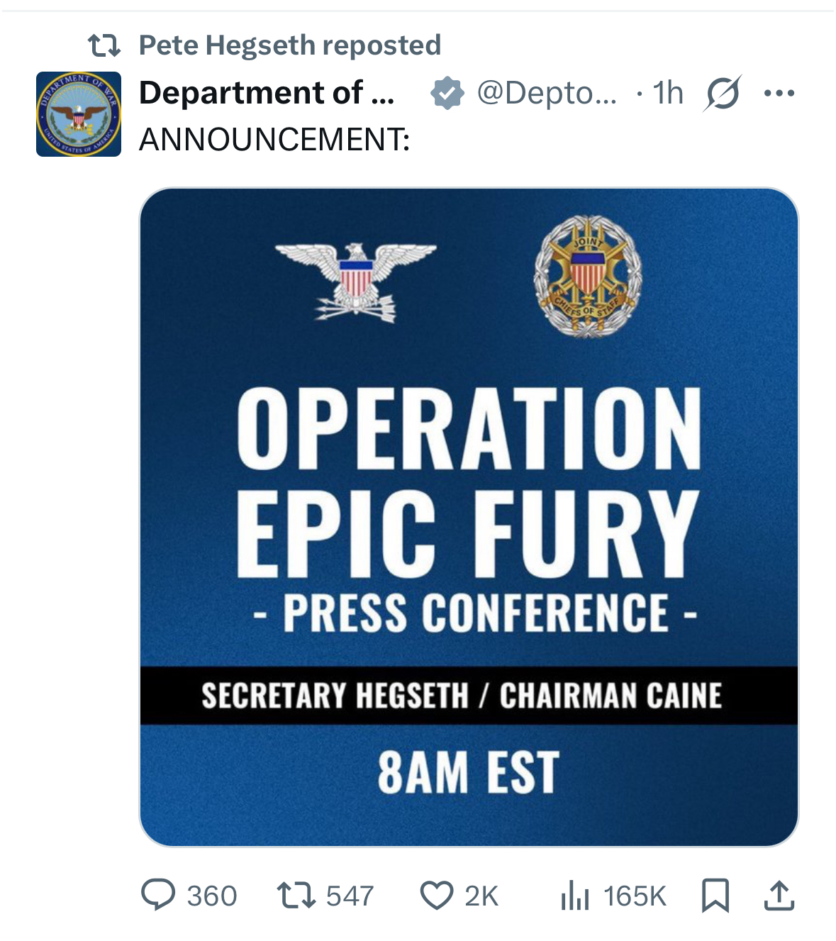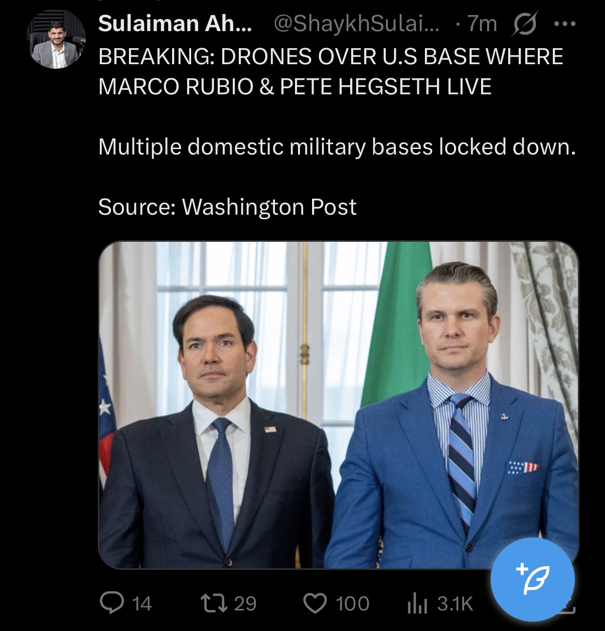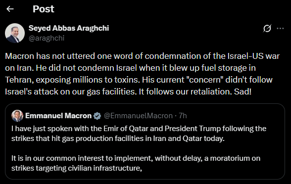 he posted it 5 hours ago qatar got hit 12 hours ago