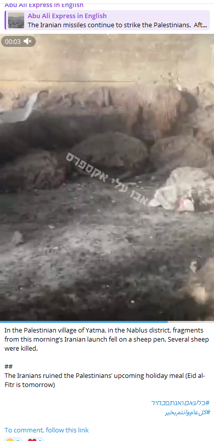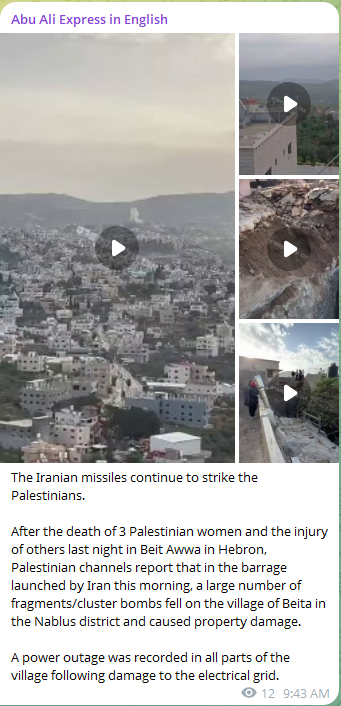 >Iranian missile hit the west bank, 4 palestinian women killed.