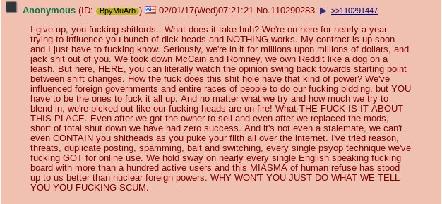 >impotent words shilling on a low traffic anonymous forum