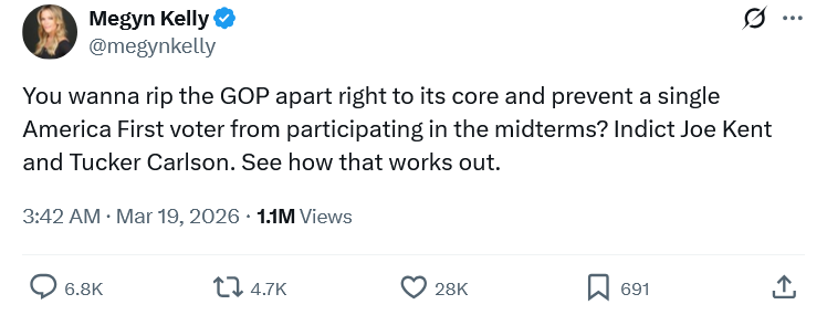 more and more ecelebs threatening to deliver the midterms to democrats: https://x.com/megynkelly/status/2034445356398707195At least we should get to see what their real weight is.