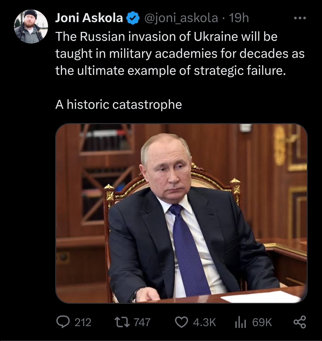 >line of contact has barely budged in six monthsrussia, bro, what the fuck are you doingthis is the most pathetic war in recorded human history
