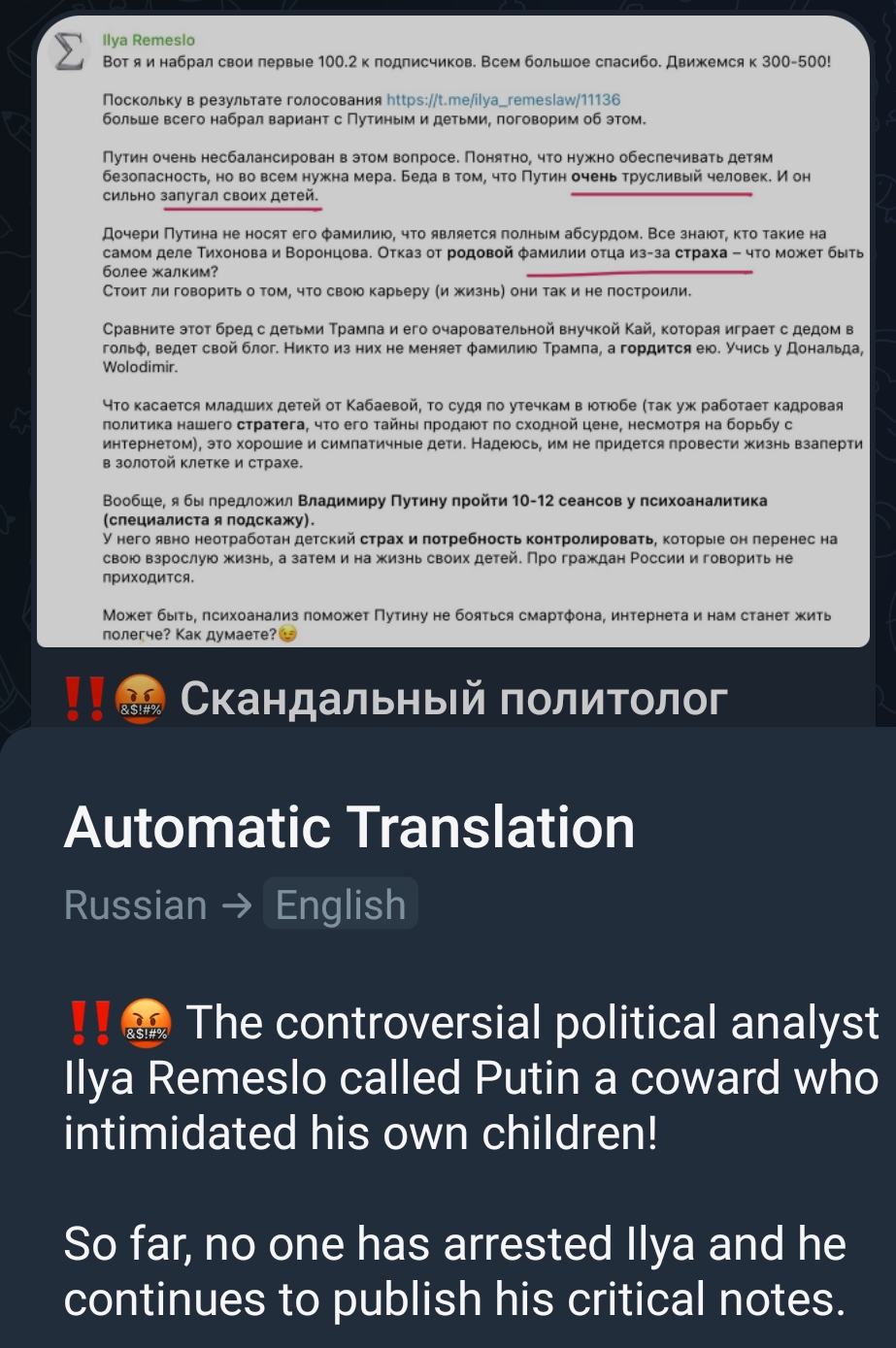 So this is why telegram is banned. How will belousov break out the news to the poor ignorant masses?