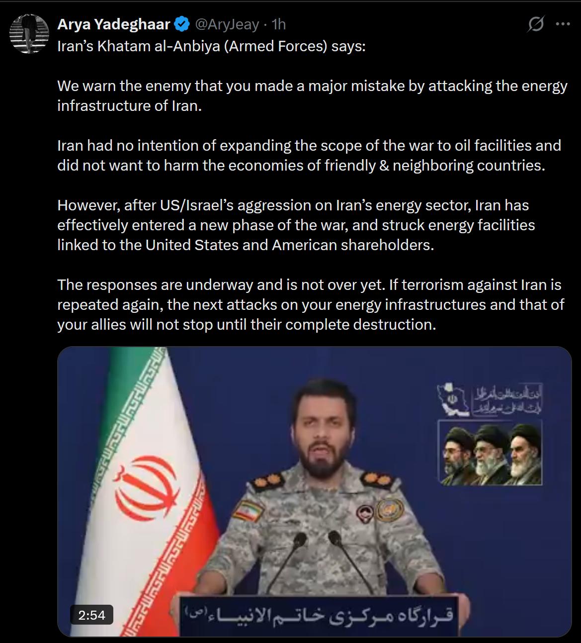 >Trump publicly vows Israel will not attack energy infrastructure in Iran again
