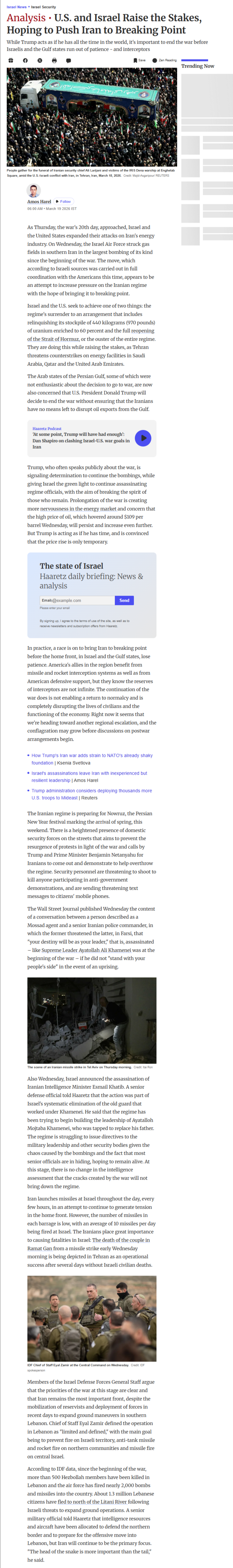 >The Trump administration is considering deploying thousands of additional U.S. troops to the Middle East as Trump weighs next steps regarding Iran, which could include an attempt to secure the Strait of Hormuz, according to Reuters.