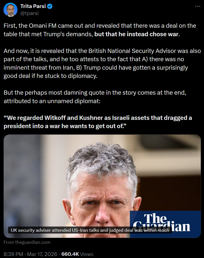 >>531108267lol, that fucking Joe Kent has lost about 1488 izzat, he shilled to the world and like 8 hours latter IRGC says they have about tree fiddyhttps://x.com/ErikaC47/status/2034419649543065623?s=20>We will not abandon uranium enrichment under ANY circumstances.” -Iran’s FM Abbas Araghchi>“We will supply you with all the nuclear energy you need for your power grids if you stop.” -President Trump. >“Never. We have enough for 11 nukes right now.” -Iran>“They weren’t building nukes.” Joe Kent. also>According to Iranian sources, General Afshin Nakhshbandi—who served in the role of coordinating between the Iranian army and the Revolutionary Guards—has reportedly been killed in an Israeli strike in Tehran.inb4 6 to 7 hours of moroccan spam