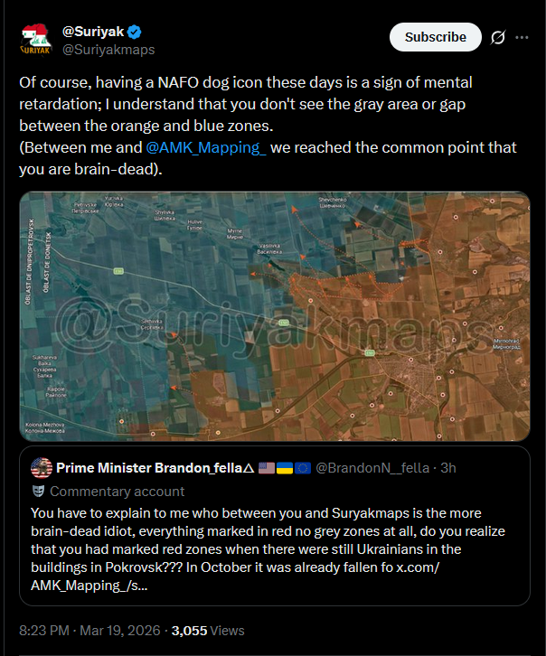In Ukraine war related news, both Suriyak and AMK agree that NAFO is criminally retarded.