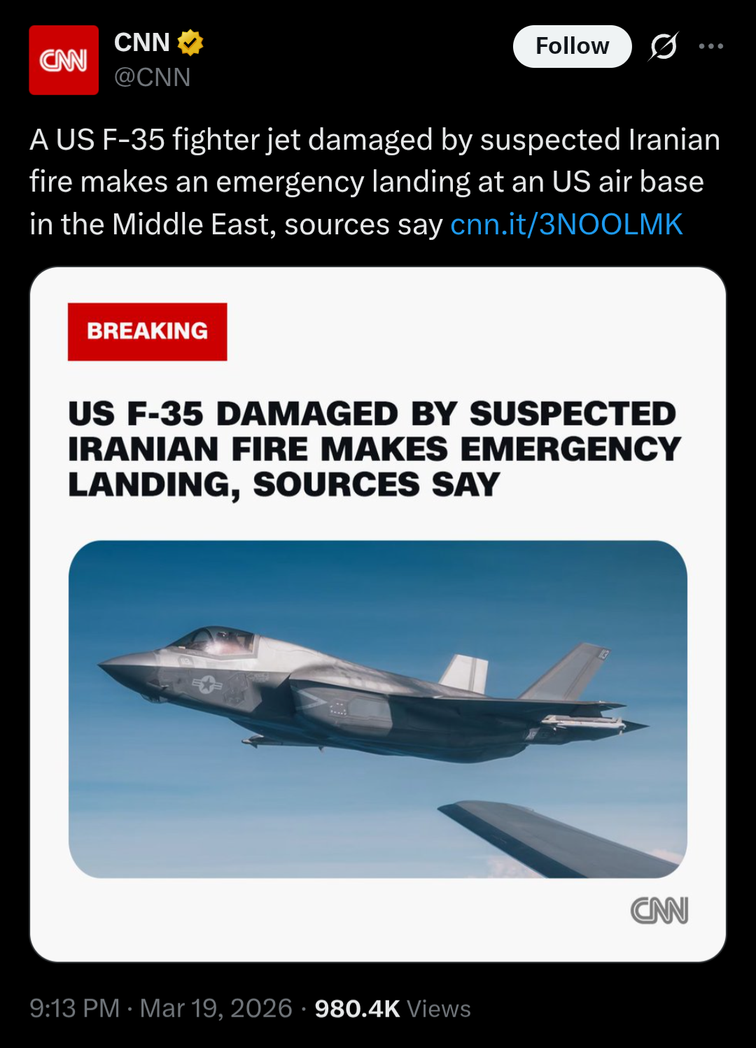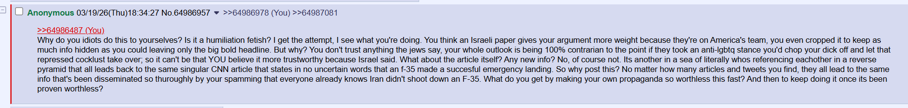 >Iran shoots down an American F-35 (/k/sisters status?)