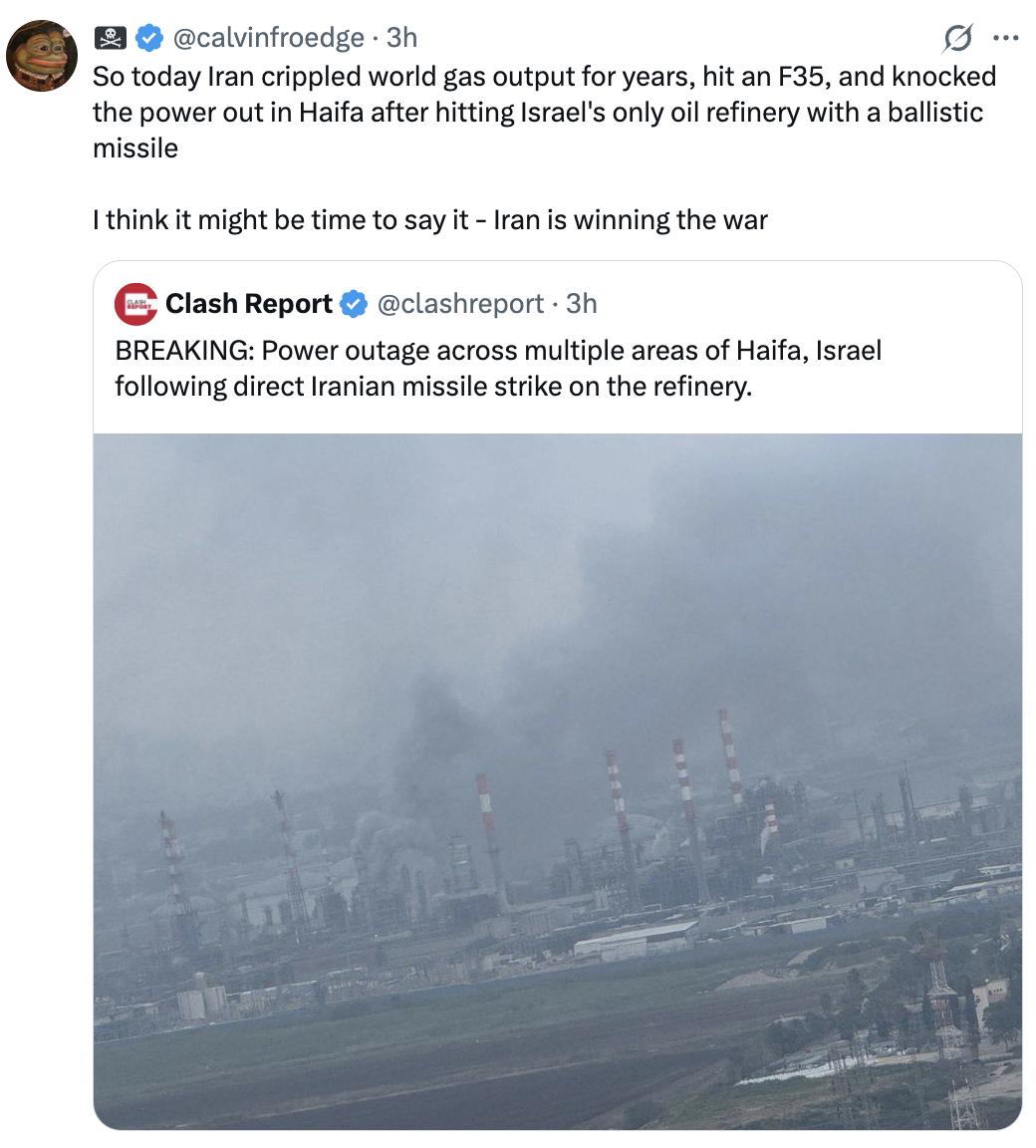 Holy shit what a clusterfuck. Will Israel be paying us all reparations for the literal shitstorm they induced?