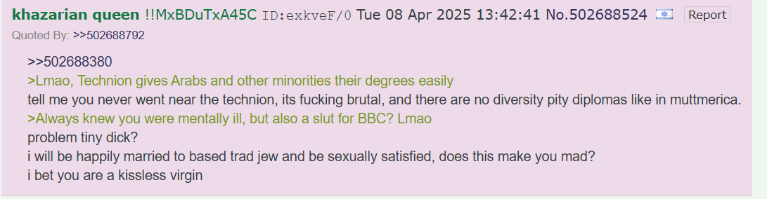 HAHAHAHAHAHAHAHA nice try schlomo kike, i already hatefucked some sephardic kikesses before, and more to come