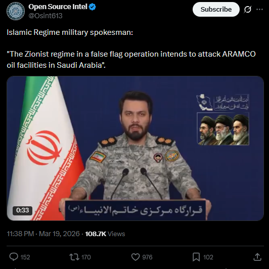 >>531153905Iran is trying to pin the blame on someone else for bombing the oil and gas facilities. They're scared.