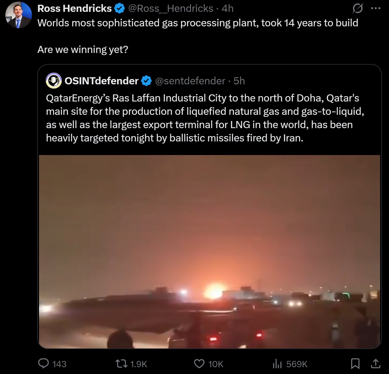 >>531159412Seen any bombs falling in Tel Aviv? Surely the Iranians aren't just going after Qatar.