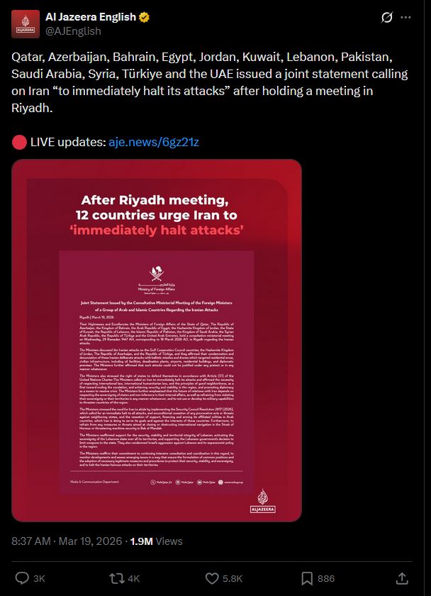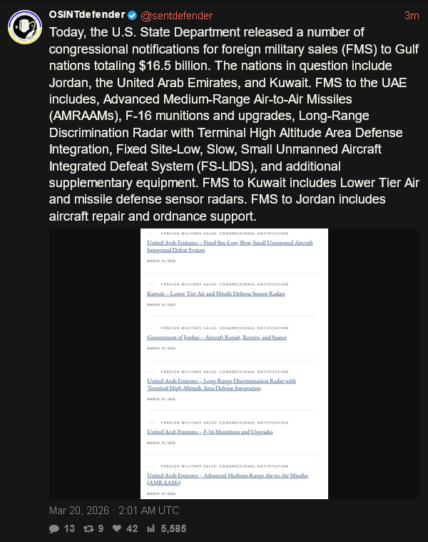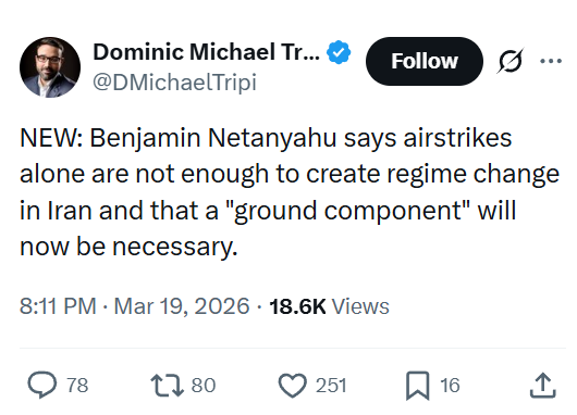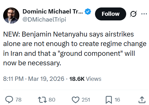Previous: >>531153680Timeline:▶ Day: 19>Brent Oil: 111$ (Peak today: 119$)>Hormuz: Still Closed>America exposed as a paper tiger>4chan goes down after power outage in Haifa, Israel (totally unrelated event guys trust :^) )>Tehran is getting POUNDED right now, probably by B52s>Iran shoots down an American F-35 (/k/sisters status?)>Iran damages Israeli Oil refinery, breaking through the "iron dome">Israel hits Iranian navy in the Caspian Sea.>Iran hits Kuwait energy infrastructure, Oil prices surge.>Trump publicly vows Israel will not attack energy infrastructure in Iran again>The Pentagon has asked the White House to approve a funding request of over $200 billion for the war in Iran, according to the Washington Post.>The Trump administration is considering deploying thousands of additional U.S. troops to the Middle East as Trump weighs next steps regarding Iran, which could include an attempt to secure the Strait of Hormuz▶Livestreamshttps://www.youtube.com/watch?v=4E-iFtUM2kk https://www.youtube.com/watch?v=JHwwZRH2wz8 ▶Telegramhttps://rentry.org/tgnews▶Twitter accountshttps://nitter.net/clashreporthttps://nitter.net/FaytuksNetworkhttps://nitter.net/sentdefender▶Israel Rocket Alertshttps://www.tzevaadom.co.il/en/▶Air Traffichttps://www.flightradar24.com/https://flightaware.com/livehttps://globe.adsbexchange.com▶Maritime Traffichttps://www.marinetraffic.com/