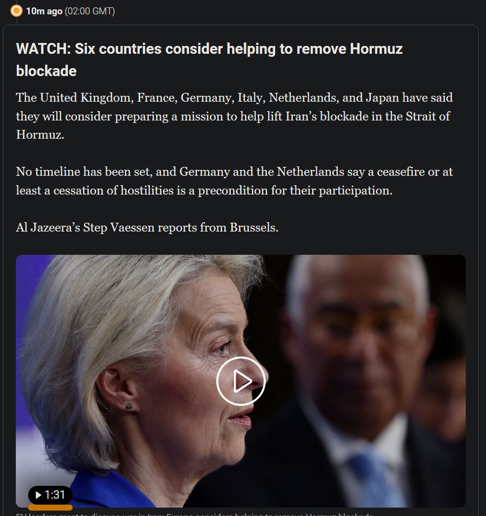 >>531161140https://www.aljazeera.com/news/liveblog/2026/3/20/iran-war-live-tehran-warns-of-intensified-strikes-if-energy-sites-targetedal jazeera runs a live feed which is pretty nice, they start a new thread every day