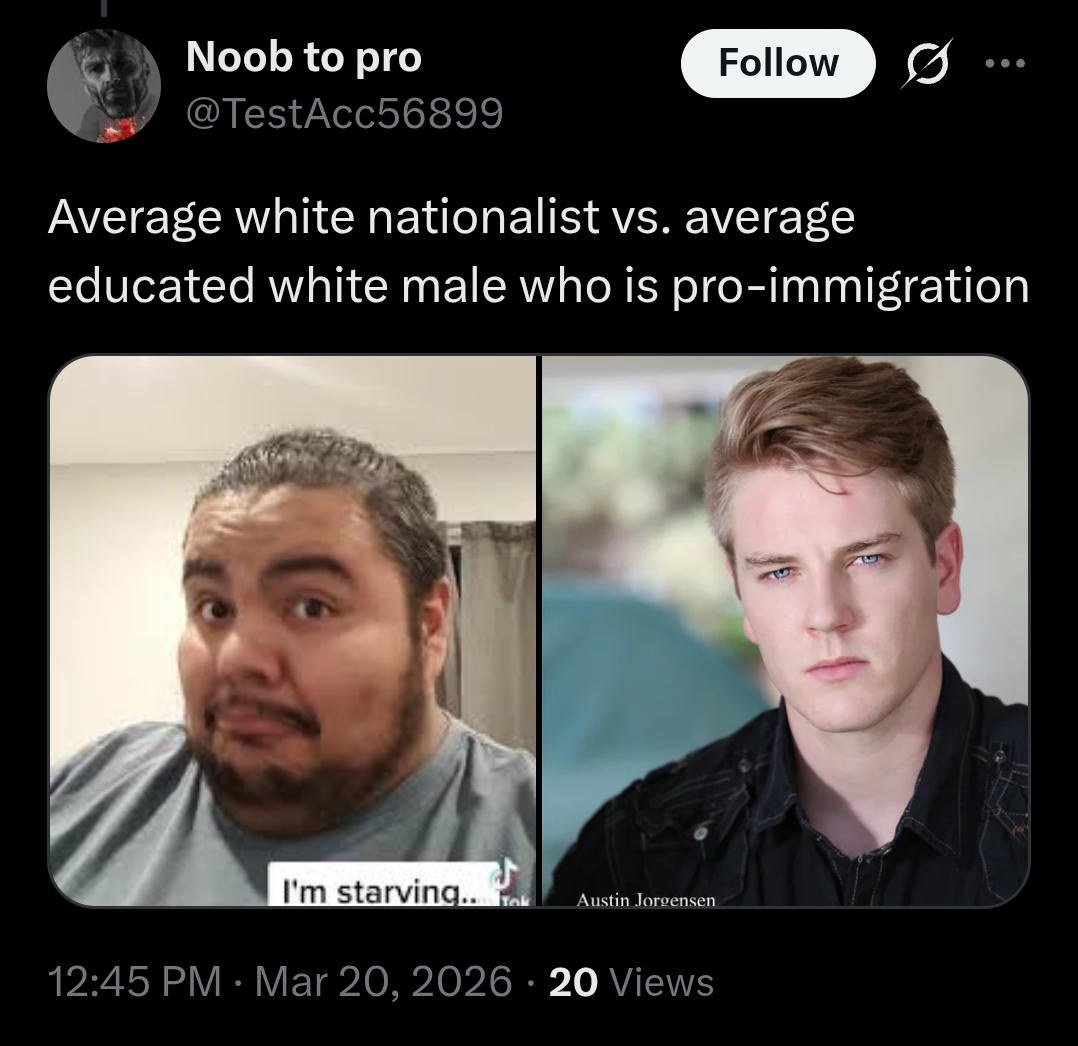 >>531162274Exactly this. They appealed to the two people being killed by ICE as white. It's like when they say Gavin Newsom is chad and has a white wife compared to J.D. Vance being fat and having an Indian wife. Just trying to make "gotchas" with points they themselves don't even believe in.
