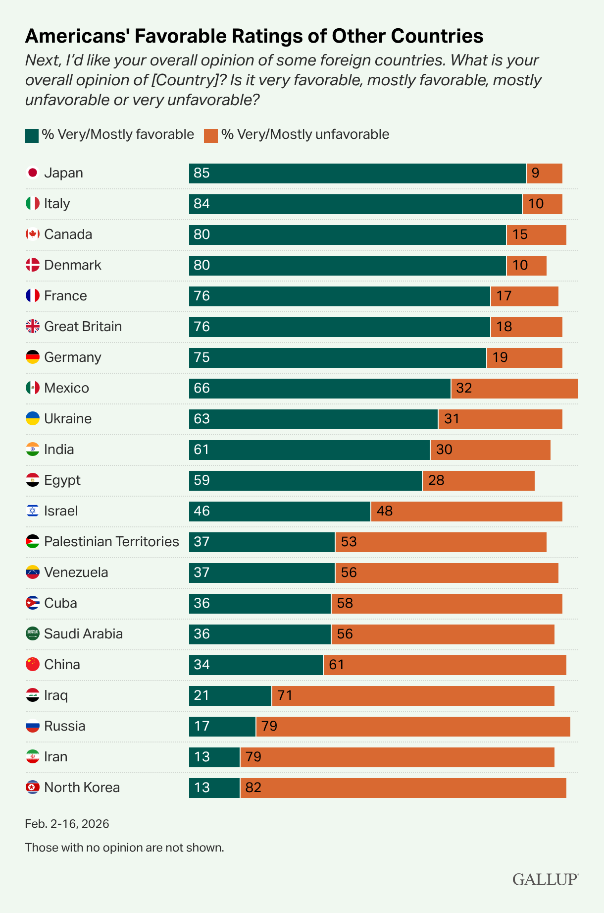 >>531170661Alright /pol/, let's see your favorability ratings. You can use the 20 countries below. Here are mine:1. USA (obviously)2. Japan3. Ireland======= mixed feelings begin ======= 4. Italy5. Great Britain6. Australia7. Russia8. Iran9. Canada10. Germany11. France 12. China======= dislike begins ======= 13. North Korea14. Mexico15. Denmark16. Venezuela17. Cuba======= hate begins ======= 18. Ukraine19. India======= would eagerly volunteer in a war against these ======= 20. Israel