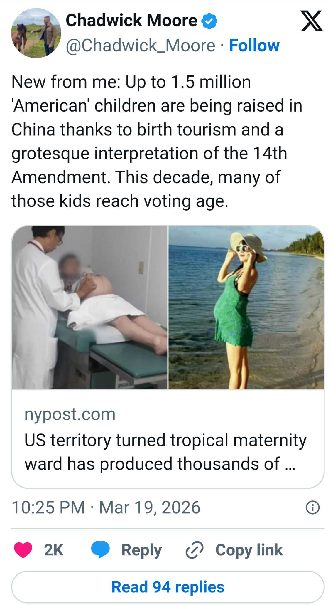 >>531163673https://nypost.com/2026/03/19/us-news/us-territory-where-thousands-of-chinese-moms-give-birth-to-american-babies/