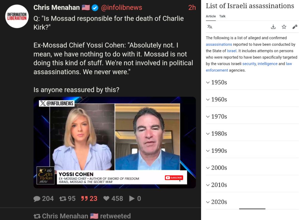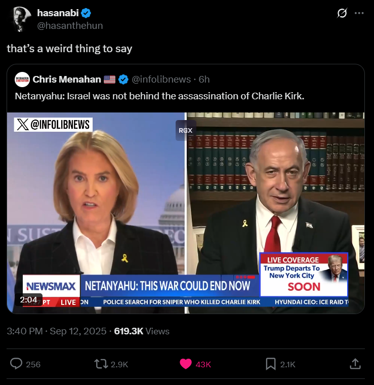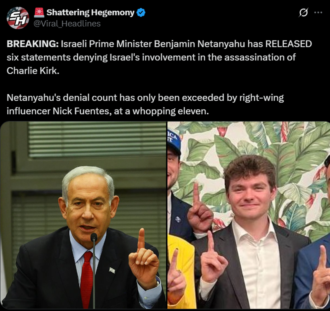 >>531168190>Did Israel Assassinate Charlie Kirk?That seemed obvious from the beginning.