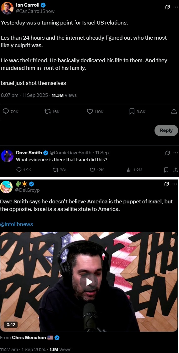 Charlie Kirk was killed as a Kapparot sacrifice.Charlie Kirk was Zionist for most of his career and ended up marrying a pro-Israel intelligence honeypot in Erika Franztve, a former model, actress and failed reality TV star who's five years older than him, after the two met in Israel.When he finally found out about the corruption and embezzlement happening in his own company, and started to push back against Jewish donors trying to control him and TPUSA, he was murdered by them.He opposed war with Iran and he supported Tucker Carlson, Candace Owens and Dave Smith. He wanted them to be critical of Zionism even though he couldn't be himself. When he tried to be, they killed him and then tried to use his death to promote Israel, Islamophobia and Left vs Right social unrest. Their plans largely failed.