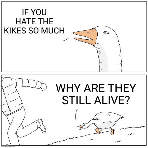 >>531179637Just keep in mind btw, this was your question:> hy would I worship some faggot kike God that put us in hell?Blasphemy of the Holy Spirit is the unforgivable sin. You’re not open to receiving the Holy Spirit and we weren’t even discussing that. You randomly walked in and declared you hate God, I’m not going to chase you out of the building with cap in hand hoping to change your mind. This is indicative of just how self-deluded you are, that you think other people have a “duty” to respond to garbage that spills out of the mouths of fools.